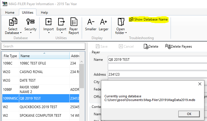 Go to Utilities and click show database name and make note of where your database is located and what it is named.