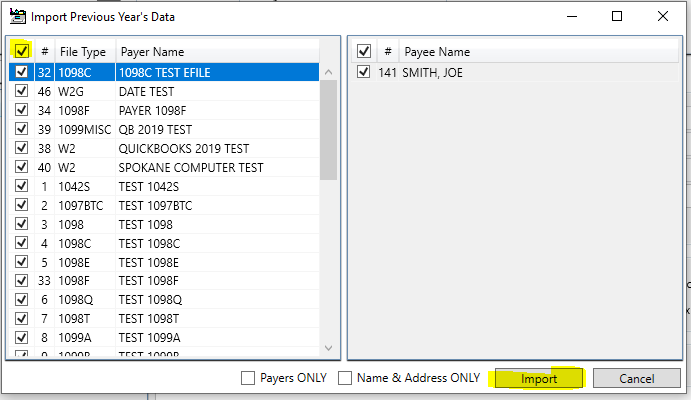 Select the top left checkbox and click Import